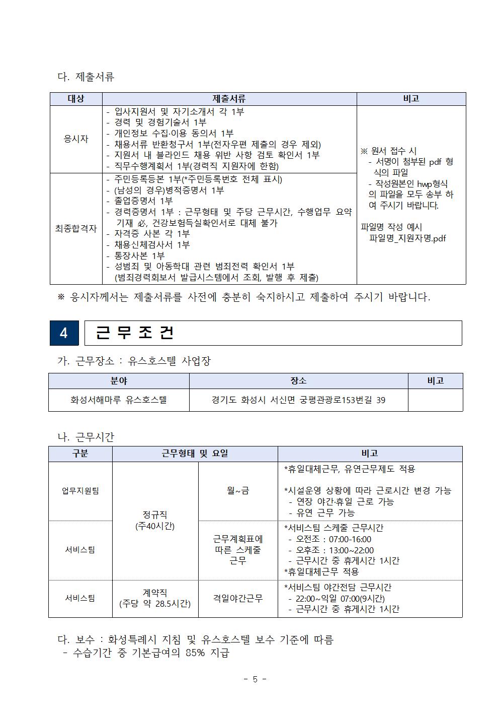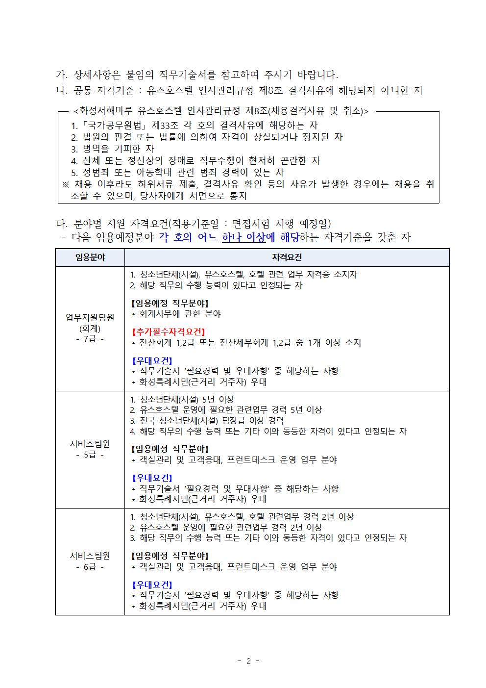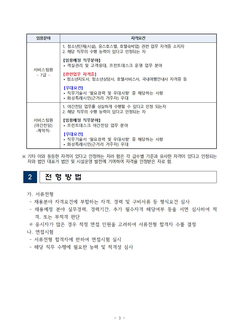 [4차공고]화성서해마루 유스호스텔 직원 채용 공고