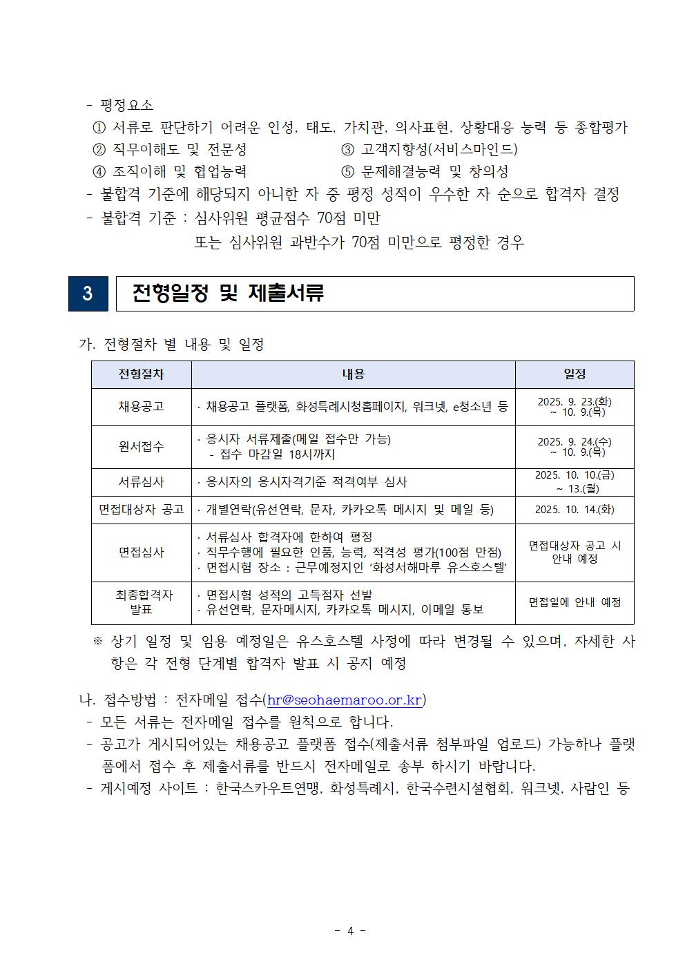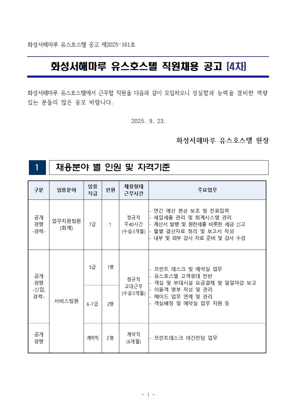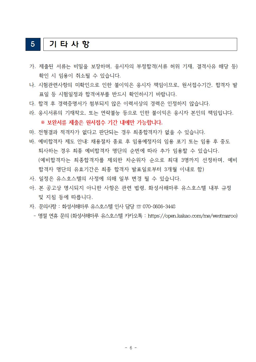 [4차공고]화성서해마루 유스호스텔 직원 채용 공고